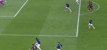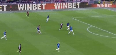 回过头来,AC米兰踢出犀利反击,福法纳中路送出精妙直塞,埃斯图皮尼安左路插上,小角度爆射破门,红黑军团打破僵局,1-0!